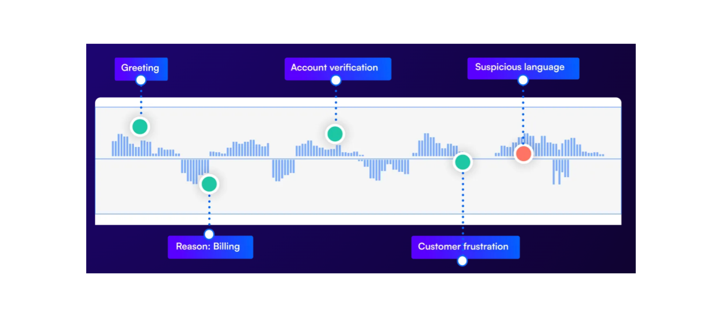 Conversation intelligence technology uses machine learning and generative AI to analyze the content of contact center calls. It can analyze large data sets (i.e., all of a contact center’s call transcripts) to identify suspicious language patterns at scale. This might include behaviors such as: